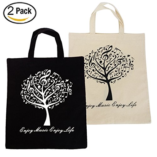 WOGOD Music Element Bag & Tote Bag & High Density Thin Cotton Bag - Cotton Shopping Bags Reusable (2Pack tree)