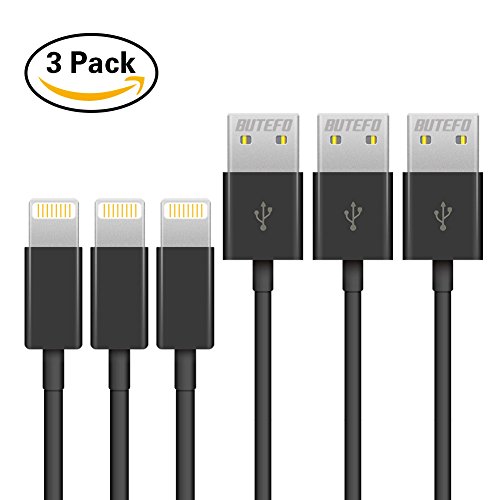 BUTEFO 8 Pin Lightning to USB Cable with TPE Jacket | 3.3ft/1m for iPhone 7, 7 Plus / iPad Pro / Air 2, mini 3 / iPod Touch 5th Gen, iPod Nano 7th Gen & More (Black 3pcs)