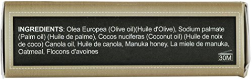 - GREAT FOR SENSITIVE SKIN: All natural ingredients like coconut oil and palm oil help to sooth and moisturize your skin while the added oatmeal acts as an exfoliant to keep your skin smoothINGREDIENTS: Olive oil, palm oil, coconut oil, canola oil, manuka honey, oatmeal