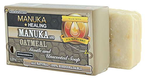 BunchaFarmers All Natural 100% Biodegradable Healing Manuka Honey and Oatmeal Gentle and Unscented Soap Bar (Made in Canada)