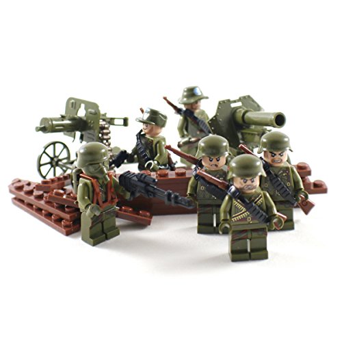 -. Title : WW2 Heavy Infantry Army Minifigures with Artillery - Building Block Figures