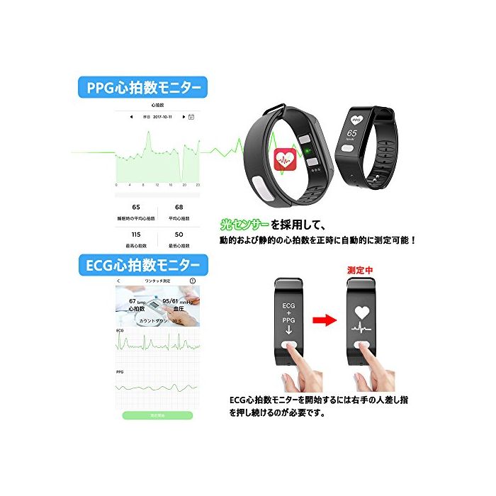 원본상품명: Anyasun スマトブレスレット 新型 心電知能 スマトウォッチ 心電 血測量 睡眠測 心拍計 活動量計 計 腕時計 多機能スマトリストバンド IP66防水 着信電話通知 SM