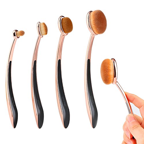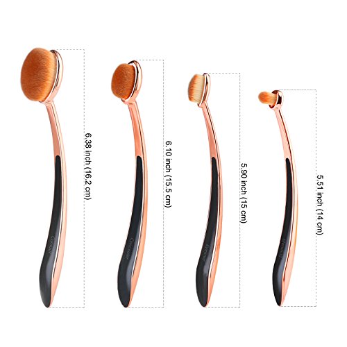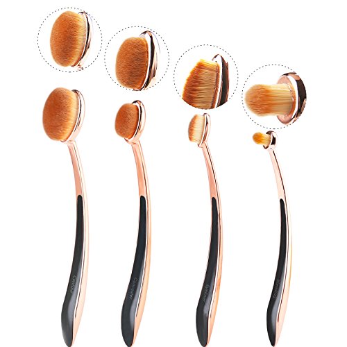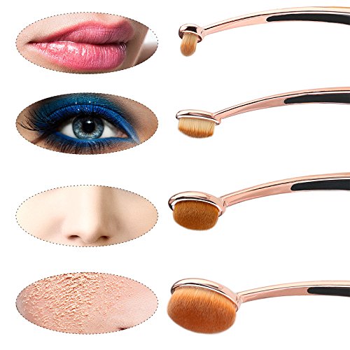 Meyshar Oval Toothbrush Makeup Brush Rose Gold Cosmetic Brushes 4pcs Sets for Powder Foundation Blush Concealer Eye&Nose Shadow&Lip brush