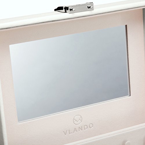 Vlando Mirrored Wooden Jewelry Box Organizers for Girls Women - Necklaces Earrings Rings Watches Storage Case Holder - Vintage Gift Box (Pearl White)
