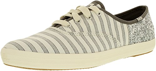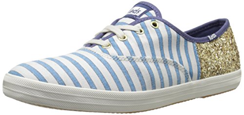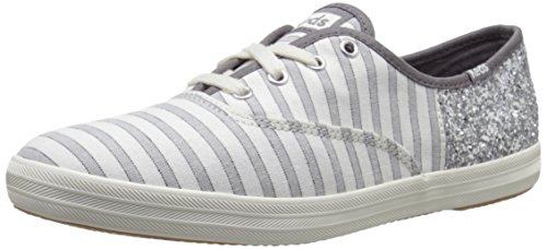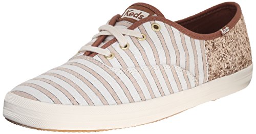 The Keds cabana strip print is taken up a notch! the back half of this champion is covered in a complementing glitter making it easy to transition from day to night