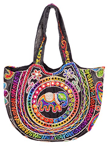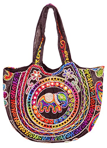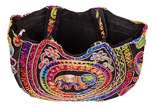 Silk Handicraft Shoulder/Hand Bag/Shopping Bag for Women & Girls (Black color)