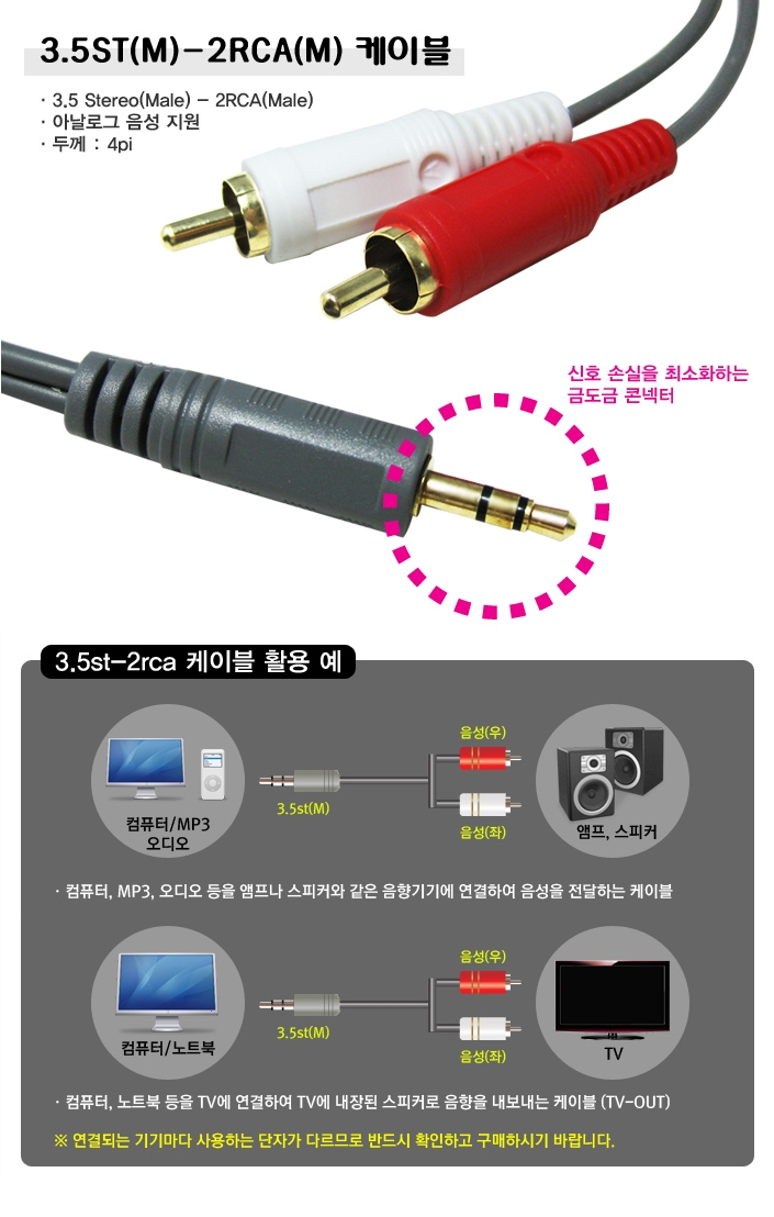 High-quality stereo audio 3.5 TO 2RCA cable,