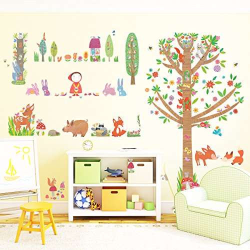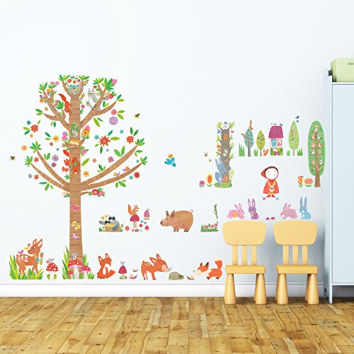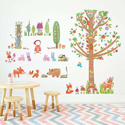 Decowall DM-1601P1603 Red Riding Hood and Large Tree in Woodland Kids Wall Decals Wall Stickers Peel and Stick Removable Wall Stickers for Kids Nursery Bedroom Living Room