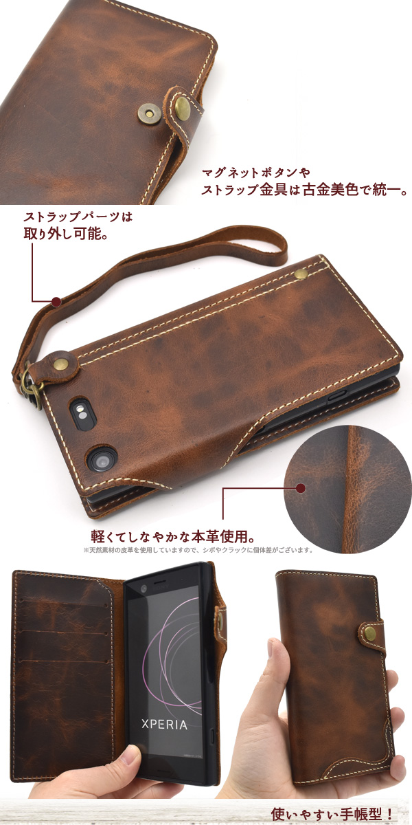 軽くてしなやかな本革使用した、Xperia XZ1 Compact SO-02K用手帳型ケース。