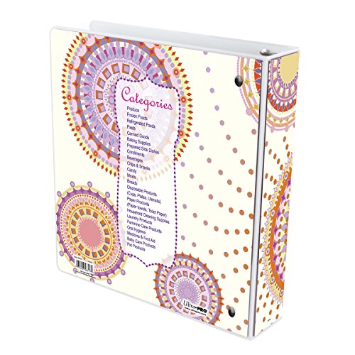3-Ring Coupon Organizer Binder: Overall Dimensions - 10⅞" x 11 ⅝" x 2". Expands to hold up to 80 pages. Each Organizer includes a 2" inch 3-ring binder with two inside cover pockets designed to securely hold contents, Categories list (on the back cover), Coupon Terminology Sheet, and 40 assorted Ultra Pro Clear Coupon Pages. Binder is also available in other designs. • Super Clear, Heavy Duty Pages, • Manufactured in the USA with domestic and imported materials • Pages are Acid-free and no PVC, • Pre-punched 3- hole design, • Organizer includes 40 total pages with 235 pockets: 10 each - 9 pocket pages (pocket size - 2 ½" x 3 ½"), 10 each - 8 pocket pages (pocket size - 3 ⅞" x 2 ¾"), 10 each - 3 pocket pages (pocket size - 7 ⅞" x 3 ⅝"), 5 each - 6 pocket pages (pocket size - 2 ½" x 5 ¼"), 5 each - 1 pocket pages (pocket size - 8 ½" x 11")
