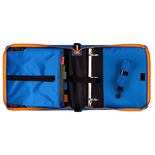 Five Star Vertical Flip Zipper Binder helps you organize paperwork and is made of durable, water resistant materials. Lasts All Year. GUARANTEED!* A 5-pocket, vertical expanding file is included and the binder flips open and stands upright on your desk to provide easy access to the documents in the file. It holds up to 200 sheets. This 2 in. binder also has a 3 ring fixture that holds 380 sheets for a total capacity of 580 sheets. The rings are removable to give you a portable writing surface outside of the binder. You can also easily take notes, leaving the rings in your binder, by flipping the front cover of the binder back. This versatile binder also includes a softly lined, padded pocket that serves as a safe place to store your tablet. A small mesh pocket holds pens, pencils and more. The full zipper closure of the binder makes it great for taking on the go and a durable strap is included for easy carrying. Binder is blue and fits in a backpack. 13.5 in. x 12.75 in. x 3.36 in. *ACCO Brands will replace any Five Star binder that is returned within one year from the date of purchase. This guarantee does not cover damage due to abuse.