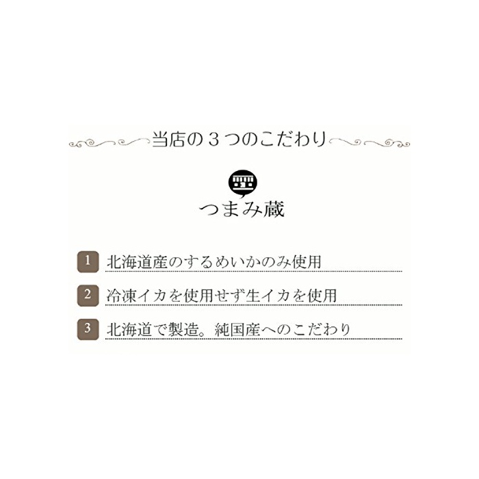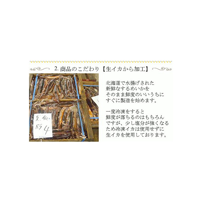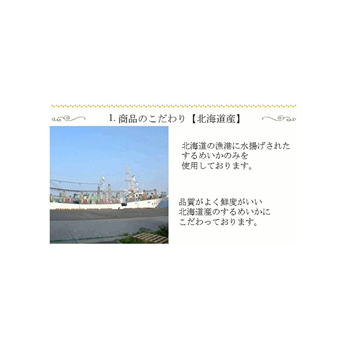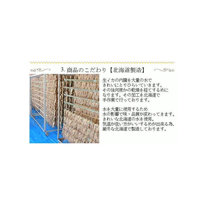 홋카이도 앞 해변의 모래밭산이 가 만을 사용 하고 있습니다.한층 더생 물오징어를 사용하여 맛있은 말린 오징어족을 제공 하고 있습니다.