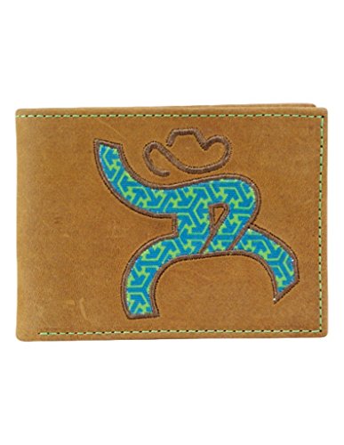 -. Title : Hooey Roughy Signature Brown Bifold Wallet w/ Blue & Green Canvas - 1625161W3