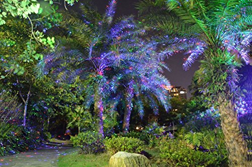 • 1/Colorful Red+Green+Blue(RGB) Moving Laser Lights-This laser lights is extremely bright and makes trees and surfaces "sparkle". Single/multiple colors of selection and 7 lighting modes are allowed(Red, Green, Blue, Red+Green, Red+Blue, Green+Ble, Red+Green+Blue). Enjoy a shower of thousands of lights points sparkling automatically, distribute to trees, lawn and houses, it can make romantic atmosphere.