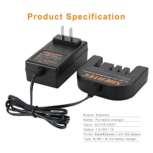 Shentec 1.2V-18V Black and Decker Battery Charger, Fit for Black and Decker 7.2V 9.6V 12V 14.4V 18V Ni-MH / Ni-Cd Batteries