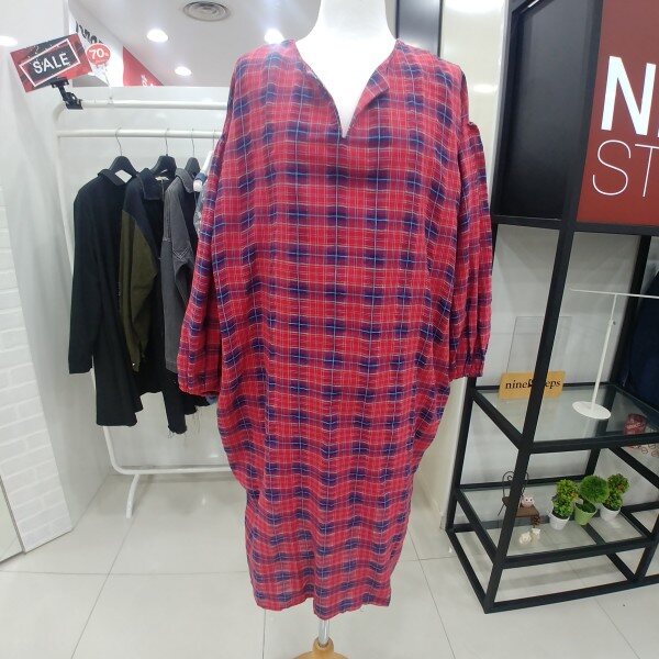 넉넉한 핏이라 여유있게 착용이 가능한 체크 원피스 V넥라인으로 여성스러운 느낌의 심플원피스