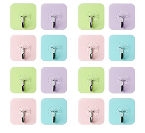 Heavy duty hook: minimum bearing of wall hooks is 22 lbs/ 10 kg, size is 6 x 6 cm, 16 pack hooks with Pink,Blue,Green,purple 4color make it almost invisible, good decor