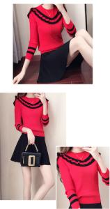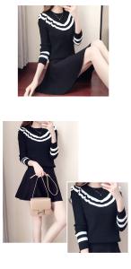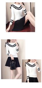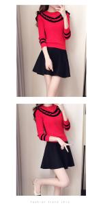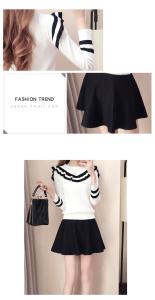 ニットセットアップ セーター ニット ミニスカート フレアスカート フリル バイカラー ライン 長袖 プチプラセール