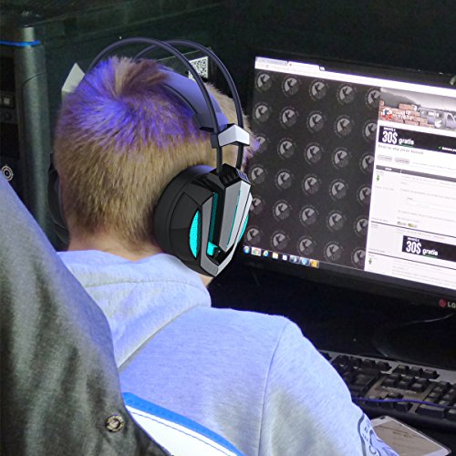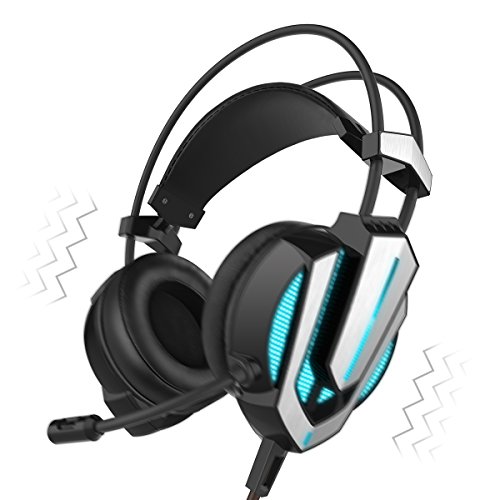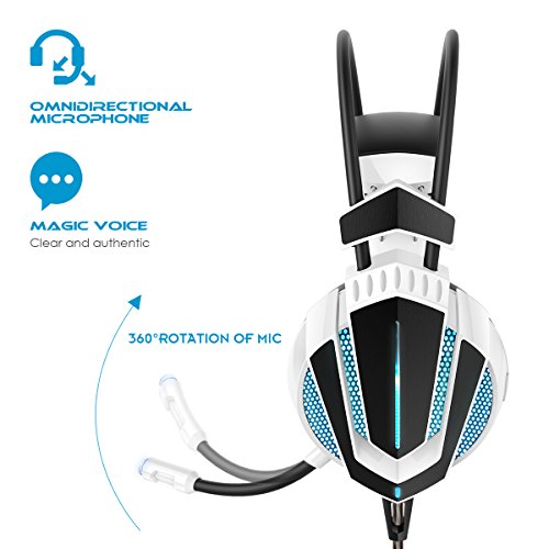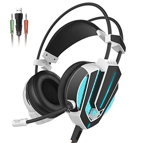 Honstek G9 Gaming Headset, USB and 3.5mm Stereo Surround LED Lighting Vibration Headphones with Microphone and Volume Control, Compatible for Laptop PC Computer (Black/White)