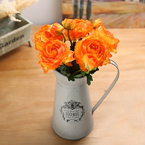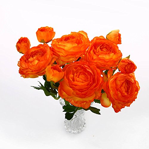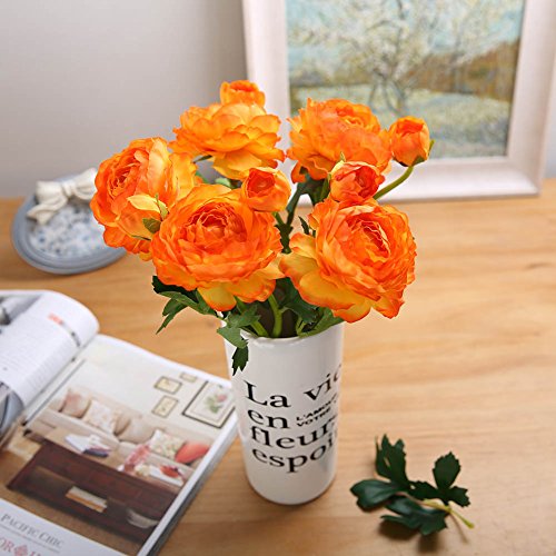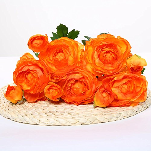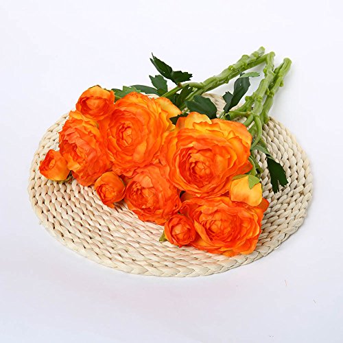Luyue 5 Stems Silk Ranunculus Asiaticus Artificial Silk Flower for Home Decorations,Pack of 5 (Sunset)