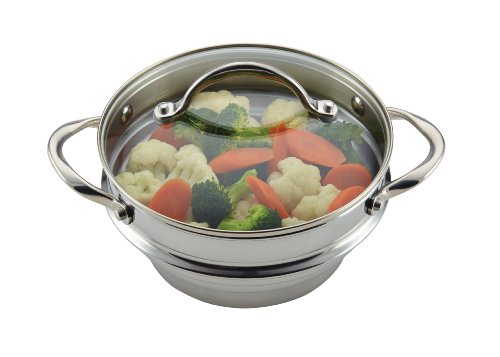 ANOLON 77447 CLASSIC STAINLESS STEEL UNIVERSAL COVERED STEAMER INSERT WITH GLASS LID