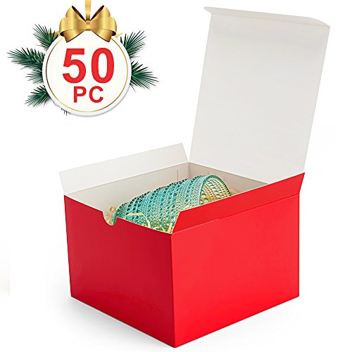 MESHA Gift Boxes 50 Pack 6x6x4 Inches, Red Paper Gift Boxes with Lids for Gifts, Crafting, Cupcake Boxes