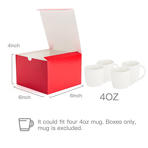 Red GIFT BOXES - Our high-quality recyclable cardboard gift boxes have a charming rustic look and a natural red finish. At 6x6x4 inches, they are the perfect size and shape for small gifts and homemade cupcakes, for using as wedding favor boxes, or for storing mini ornaments! Boxes only - no other accessories included.