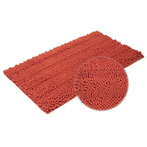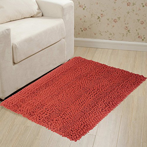 Chawind Striped Plush Chenille Bath Mat (20 x 32, Coral)