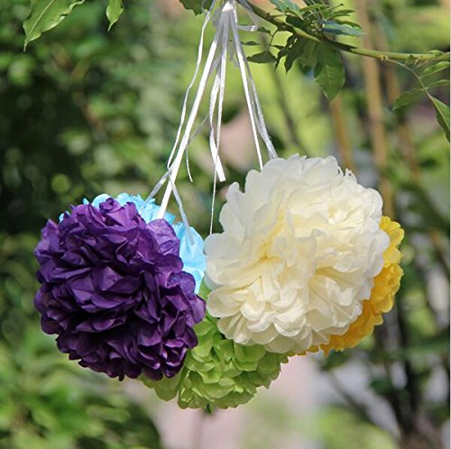 Sorive Pack of 12pcs Mixed Size 8'' 10'' Green Blue Tissue Paper Pom Poms Flowers Set Wedding Party Decor SRI1882