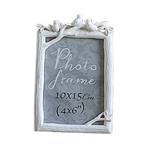 MineDecor 4x6 Picture Frame Animal Resin Vintage Photo Frames Ornament Stand for Table Top Desk (Bird, White)