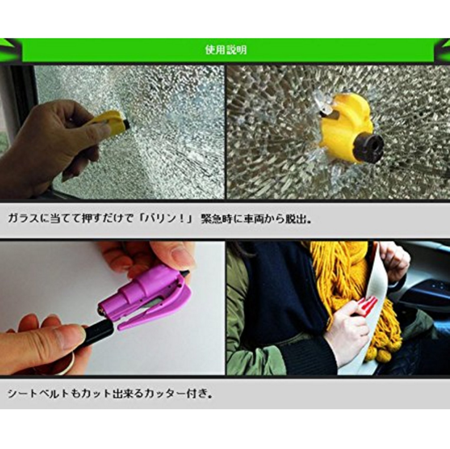 ◆ It is an encouraging tool with a cutter that can also cut the seat belt with "Barin!