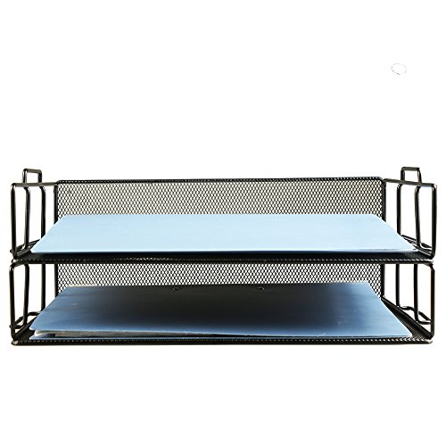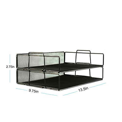 Xinyaoshi 2 Tier Stackable Desktop Document Letter Tray Desk Organizer,-13.5'' L x 9.75'' W x 2.75'' H (black)