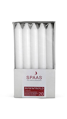 7 inch tall Tapered Candles, White or Ivory, Burning 6 hours, Box of 20 (White)