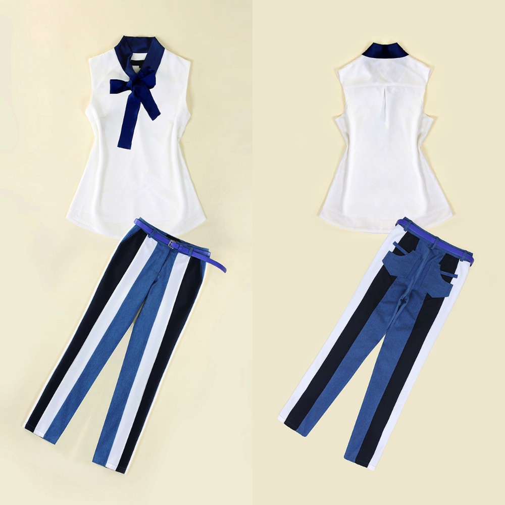 着回し◎☆トレンド ノースリーブシャツ&ストライプパンツ セットアップ