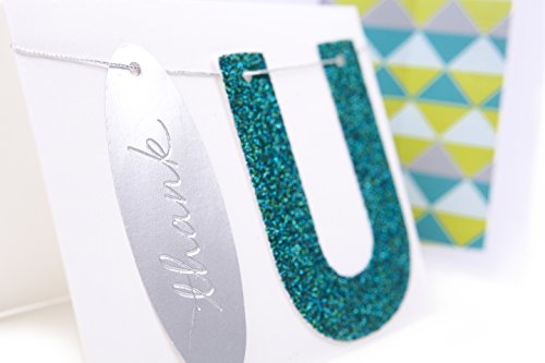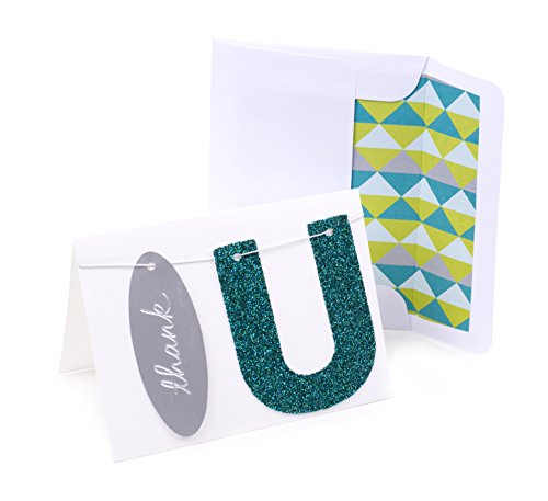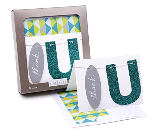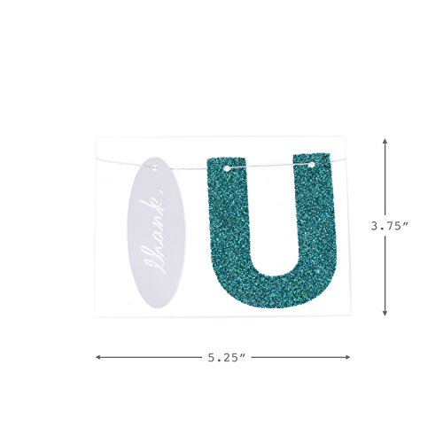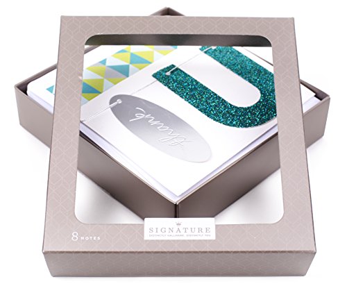 Studio : Hallmark Marketing Company, LLC (Office) Publisher : Hallmark Marketing Company, LLC (Office) Binding : Office Product Product Description These beautifully crafted cards feature an embossed "thank" tip on design with a silver string connecting it to a "U" in sparkling green glitter. The envelopes feature a designed liner. These thank you notecards are blank inside and measure 5.25 by 3.75 inches with 8 notecards and 8 envelopes included. Extra postage is required. Hallmark's Signature collection offers stylish shoppers a curated and considered line of upscale and unique cards and gift wrap that reflect their personal style. Hallmark was founded in 1910 when 18-year-old J.C. Hall arrived in Kansas City, Missouri, with a couple of shoeboxes of postcards under his arm and the American dream in his heart. Hallmark products are sold online and in nearly 40,000 retail stores across the globe and people continue to recognize the iconic Hallmark brand as "the very best." 0