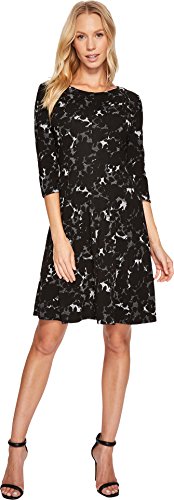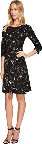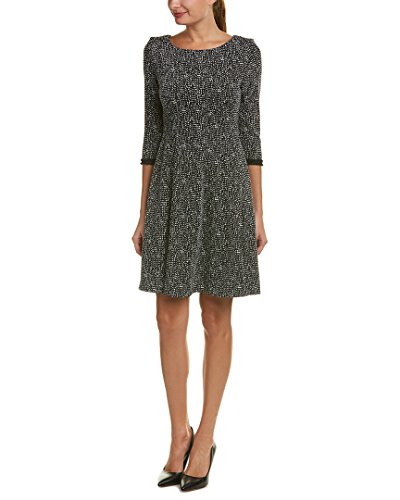 Taylor Dresses Women's Falling Leaf Novelty Jacquard Knit Fit and Flare Dress, Black/Ivory, 4