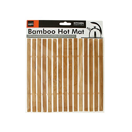 Bamboo Hot Mat Helps to keep your precious counter tops and tables safe from hot pots or pans. It mades with bamboo sticks threaded with nylon and decorated with plastic beads. Bamboo is a dense enough wood to be naturally water-resistant and non-absorbent. This inhibits the growth of germs or bacteria. Ideal for bringing a natural, outdoor feel to your dining table. Bamboo Hot Mat measures approximately 7 3/4" x 8". Comes packaged in a poly bag with a header card. Replace your metal trivets with safe Bamboo Hot Mat. It made from a renewable and sustainable material. Bamboo is a natural wood and some color variation should be expected. Buy a second one to protect your surfaces as your large cookie sheets come out of the oven. If you are not satisfied with it or it has manufacturing defects just return it within 30 days for a full refund, risk free. Do not waste this occasion to get your Bamboo Hot Mat. Be an early adopter. 0 |
