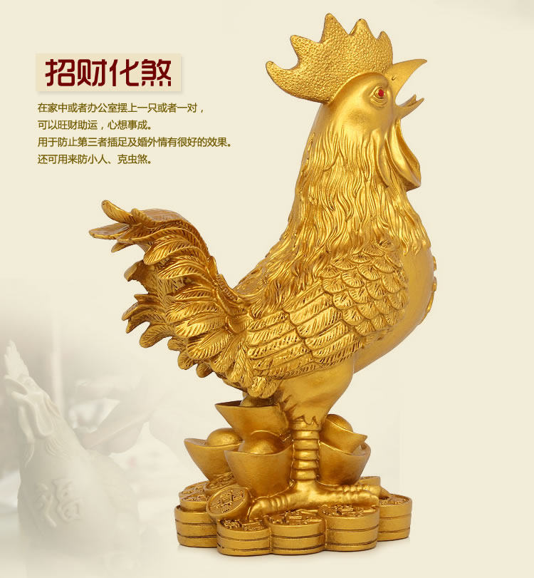 产品特点: 公鸡专制蜈蚣煞、外桃花煞。如化解偏桃花:有心怀不轨异性觊觎着您的配偶,或令你讨厌的性骚扰,若怀疑配偶有婚外情,可将之摆放在家中,可用一对,左右各一放在爱人衣柜暗角。 鸡喙对着门外或者窗外。在家中或者办公室摆上一只或者一对,可以旺财助运、心想事成。