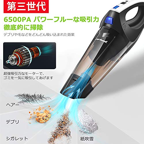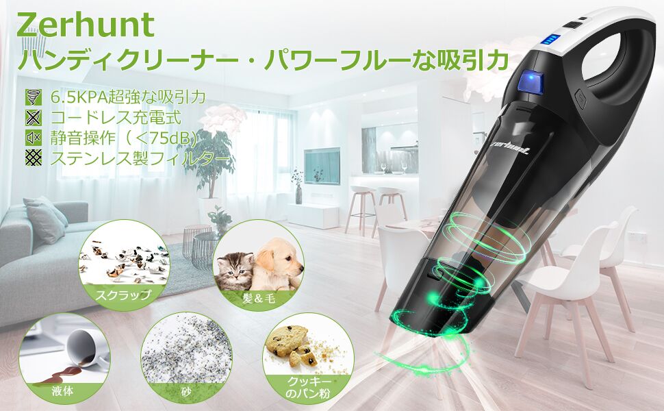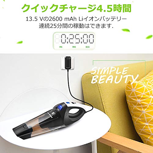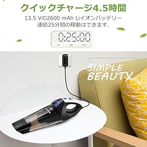 しかも、小型で軽量の充電式ハンディ掃除機であるため、満充電後、部屋中や車中に一気に清掃することができます 。