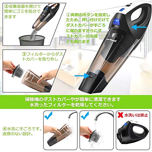 【コードレス式充電掃除機】コードレス式充電ハンディ掃除機は持ち運びができるのでコードの巻き込み心配の恐れがありません。掃除しようとする時にコードがついてないのであなたが掃除機を手持ちで高い所かつ低い所そして隅から隅まですべての場所に到着できる。パフェクトなクリーニングのためにそばにいてくれる理想なハンディ掃除機になりました。
