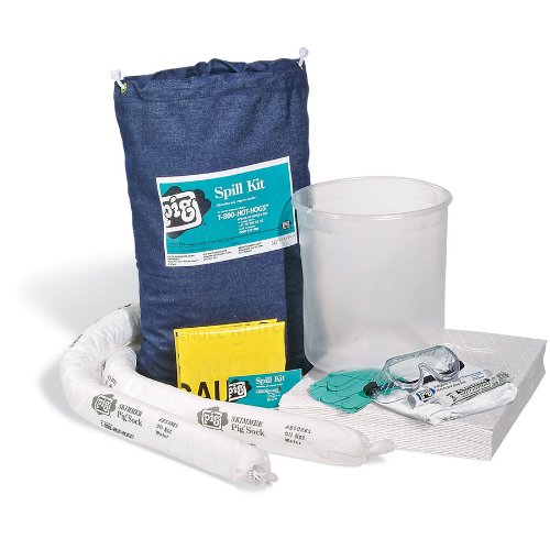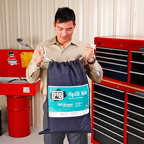 -. Binding : Misc. -. Brand : New Pig Corporation -. Feature : Durable denim bag hides dirt and can fit almost anywhere / Pig oil-only socks stop spreading spills; Pig stat-mat absorbents quickly pull in oil; Pig repair putty plugs or patches leaks and cracks / Instant bucket, goggles, gloves and coveralls help you handle spills or ruptures on the road / Temporary disposal bags help make cleanup easier / Spill kit in compact bag with drawstring closure is ideal for storage behind a vehicle seat -. IsAutographed : 0 -. IsMemorabilia : 0 -. Label : New Pig Corporation -. Manufacturer : New Pig Corporation -. Model : KIT406 -. MPN : KIT406 -. NumberOfItems : 1 -. PackageQuantity : 1 -. PartNumber : KIT406 -. ProductGroup : BISS -. ProductTypeName : LAB_SUPPLY -. Publisher : New Pig Corporation -. Studio : New Pig Corporation -. Title : New Pig KIT406 30 Piece Oil-Only Spill Kit in Stowaway Bag, 6 Gallon Absorbency