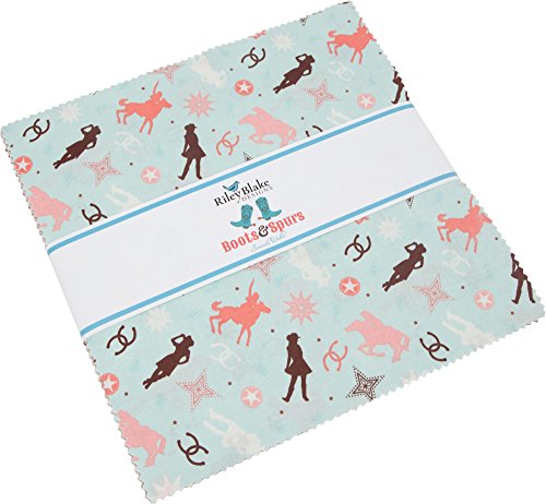 Samantha Walker Boots & Spurs Pink 10" Stacker 42 10-inch Squares Layer Cake Riley Blake 10-6860-42