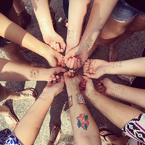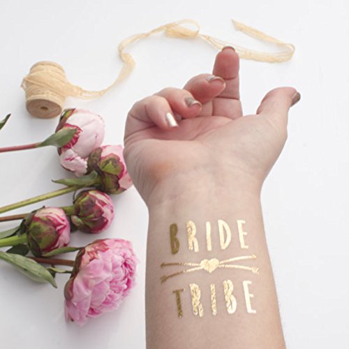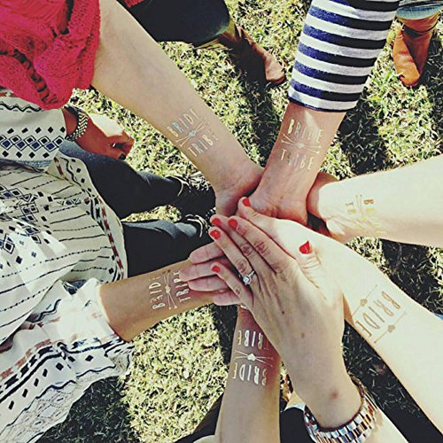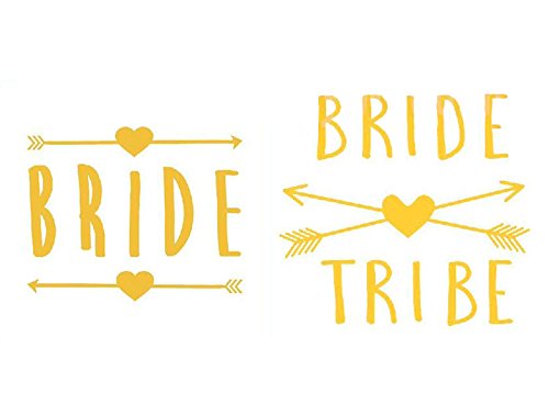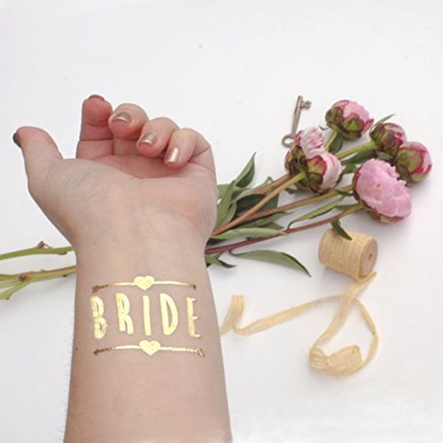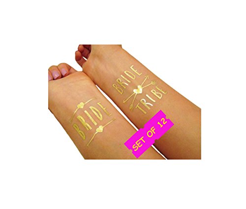 12-PACK Bachelorette and Bride Tribe Temporary Tattoos, Metallic Shiny Gold Flash Tattoos,Great idea for Bachelorette Party Supplies & Accessories Favors