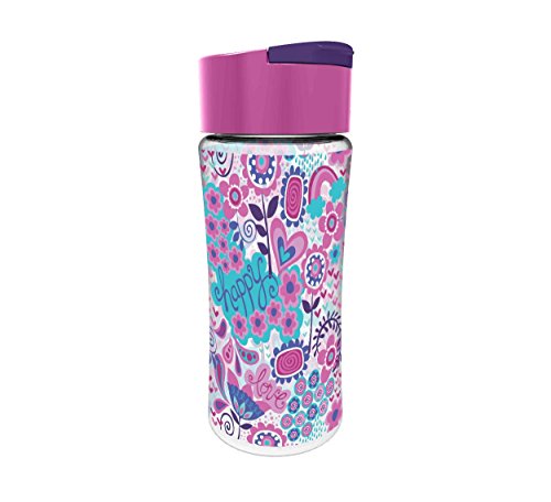Fit & Fresh Kids' Reusable Water Bottle, Made of BPA Free Tritan Plastic with Leakproof Flip-up Cap and Carry Handle, 16 ounces, Heart Flowers