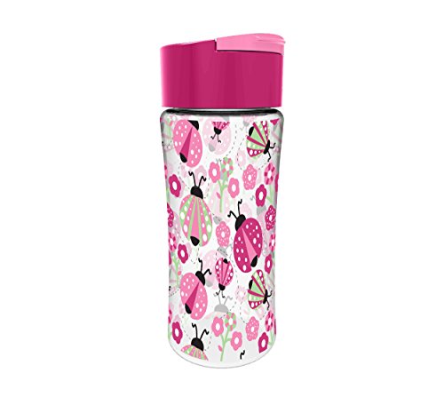 Fit & Fresh Kids' Reusable Water Bottle, Made of BPA Free Tritan Plastic with Leakproof Flip-up Cap and Carry Handle, 16 ounces, Pink Ladybug Frenzy
