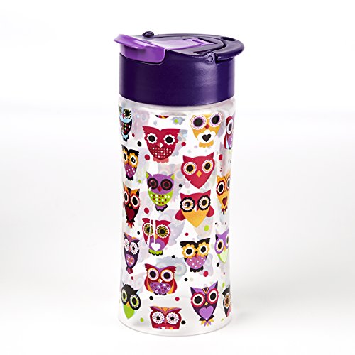 Fit & Fresh Kids' Reusable Water Bottle, Made of BPA Free Tritan Plastic with Leakproof Flip-up Cap and Carry Handle, 16 ounces, Hoot Owl