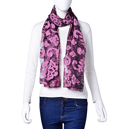 Studio : Shop LC Publisher : Shop LC Binding : Apparel Product Description Grace your beautiful looks this season with the companionship of this pink and black embroid pattern scarf. This 70% polyester and 30% chinlon scarf will allow you to add a captivating appeal to your enticing appearance while keep you warm at all times. 0