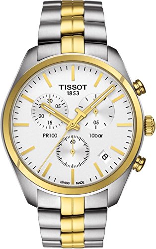 -. Title : Tissot PR 100 Chronograph Gent Silver / Gold Stainless Steel Analog Quartz Men's Watch T101.417.22.031.00