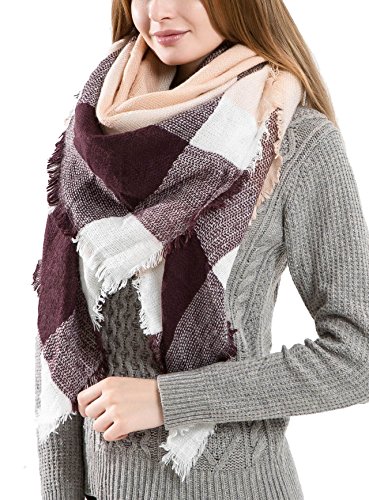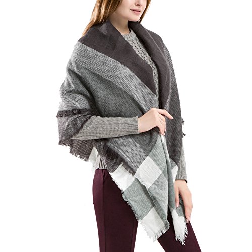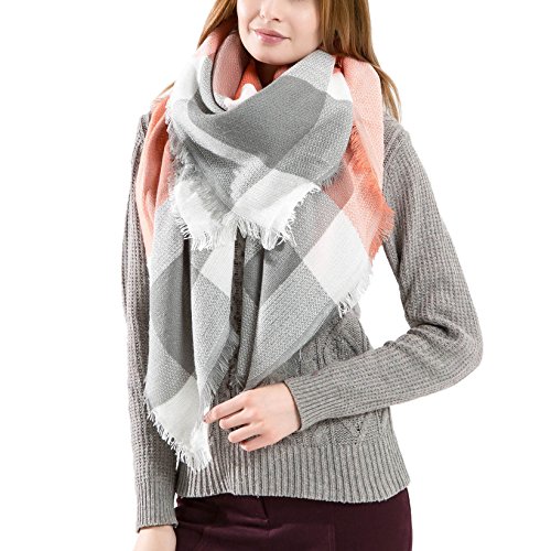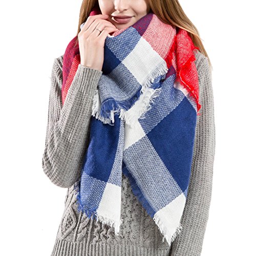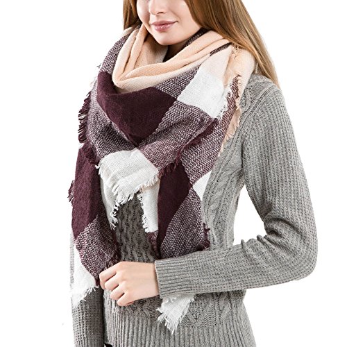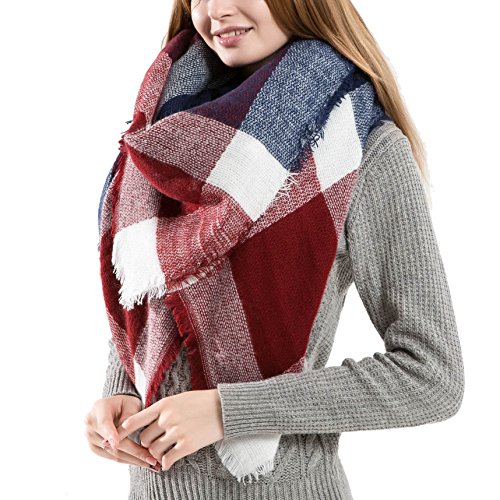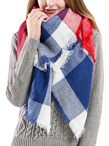 Ros Women's Wrap Scarf Plaid Blanket Winter Shawl Warm Cozy Tartan Wrap Oversized Scarves