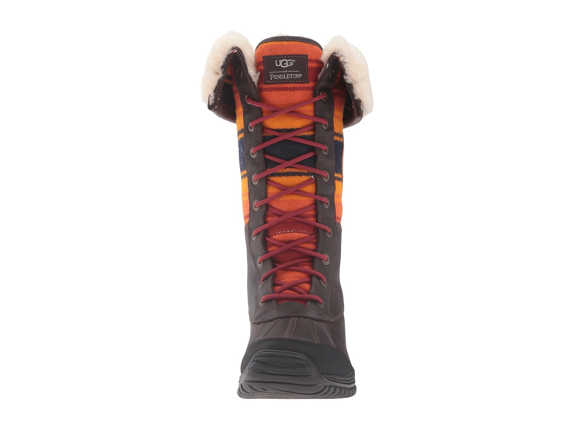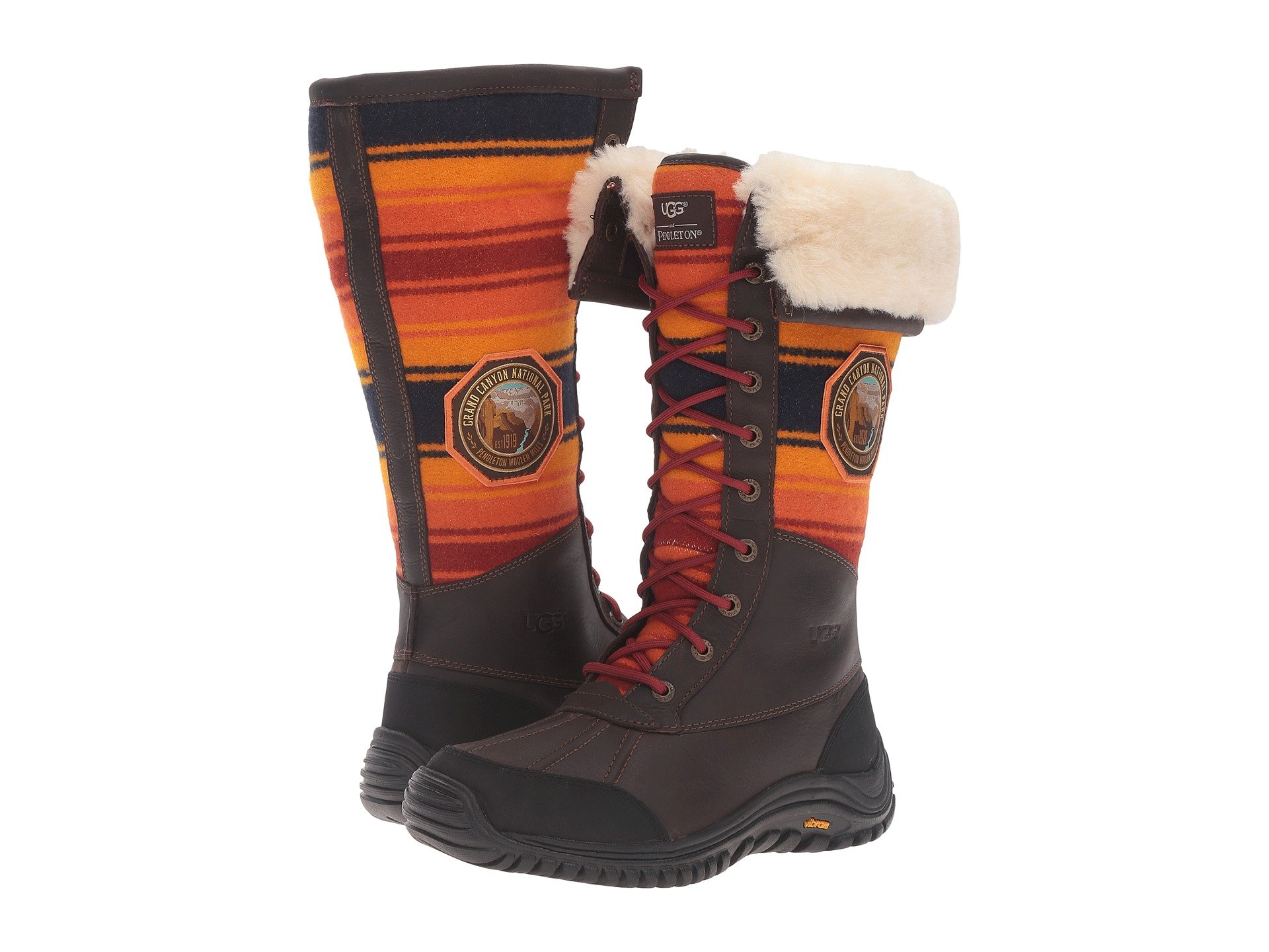 | Product Information SKU: #8764485This item is subject to quantity limitations.Enjoy the great outdoors with the superior style of the UGG? Adirondack Tall NP Grand Canyon boot!Collaboration with Pendleton? Woolen Mills.Lace-up, fully waterproof boot in leather and textile materials.Grand Canyon National Park pattern in Pendleton wool.Grand Canyon National Park patch on shaft. Waterproof eVent? membrane construction.Plush UGGpure™ lining keep feet dry and toasty. Removable, replaceable UGGpure™ wool insole.Roll cuff up for extra warmth.Vibram? traction outsole.Cold-rated to -20° F.Imported.Product measurements were taken using size 7.5, width B - Medium. Please note that measurements may vary by size.Measurements: Weight: 1 lb 7 oz Shaft: 10 1?2 in |
